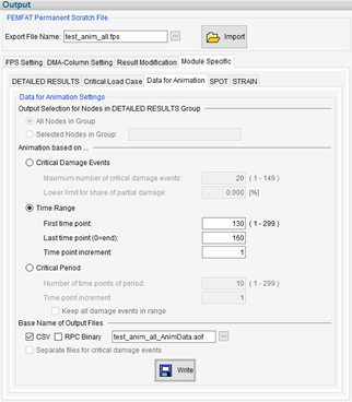 Create detailed deformation animations based on critical damage events, user-defined time ranges, or automatically detected critical periods. Export the data in CSV and/or RPC Binary formats for use in post-processors like ANIMATOR, META, or Hyperview.