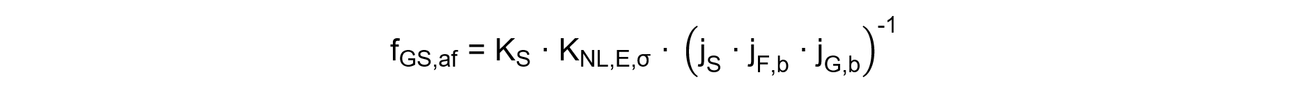 This formula considers the FKM safety factors for load jS, material jF,b and casting jG,b. The assignment of the externally determined factor fGS,af is done by node characteristic. The factor KNL,E,σ may only be considered for components made of GJL, whereby, the 'Normal Stress in Critical Plane' should be considered.
